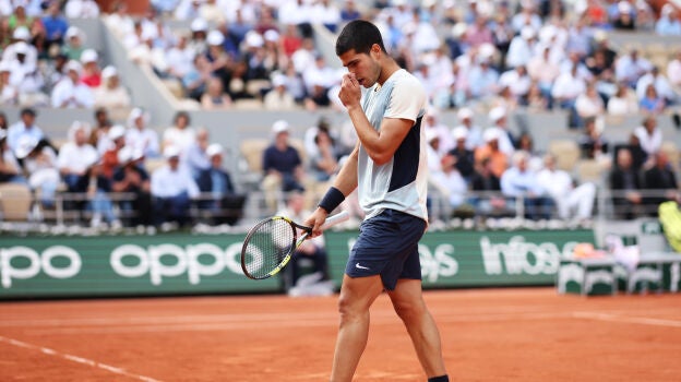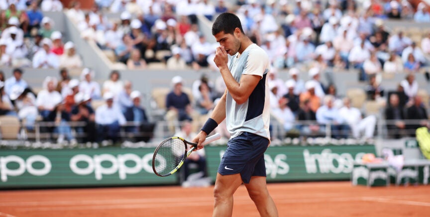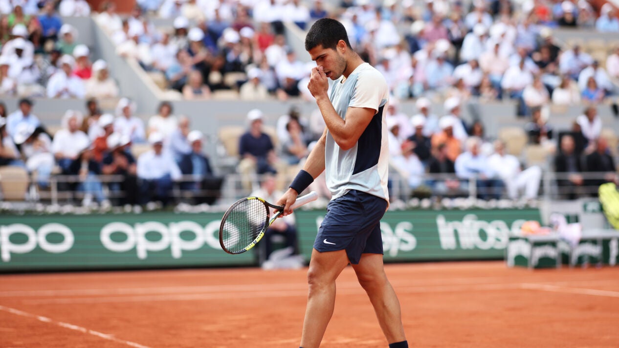 "¡Pero por qué! ¡Pero por qué!". La desesperación de Carlos Alcaraz era total. No le salía nada. Alexander Zverev le estaba superando en todas las facetas del juego en los cuartos de Roland Garros.