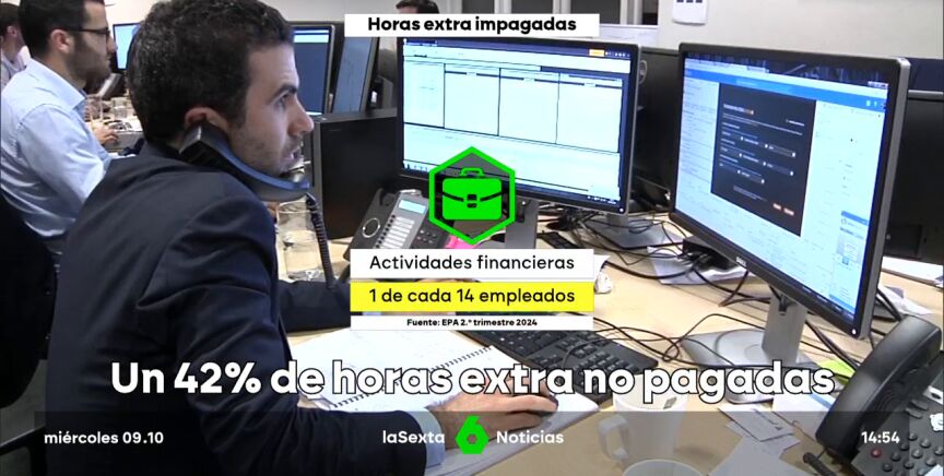 Xaviel Galicia, representante del sindicato CGT en BBVA, lo explica con claridad: "Si acabas de empezar y tu jefe te dice 'quédate', lo dejas todo". Con años de experiencia en el sector financiero, Xavier conoce de primera mano el problema de las horas extra no pagadas. "Me han pedido prolongar mi jornada de manera 'voluntaria' más veces de las que puedo contar", añade. En su sector, uno de cada 14 empleados termina quedándose más tiempo, sin recibir ninguna compensación adicional por ello.
