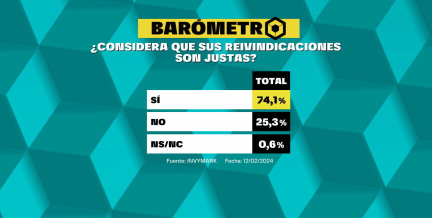 Existe, además, una amplia mayoría -tres cuartas partes- que considera que las reivindicaciones son justas. Principalmente son los votantes de PP y Vox quienes consideran, en su mayoría, justas estas peticiones.