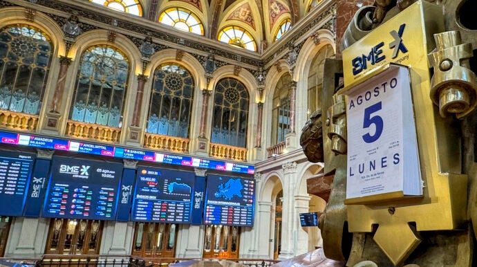 Finalmente, el Ibex 35 ha bajado este lunes un 2,34 %, el mayor retroceso desde marzo de 2023 -durante la crisis de Credit Suisse-. El selectivo, que encadena cuatro sesiones en negativo, ha moderado su descenso en el tramo final de la jornada y ha cerrado en 10.423,4 puntos, el nivel más bajo desde marzo, arrastrado por la caída de las bolsas asiáticas y la apertura bajista de Wall Street.