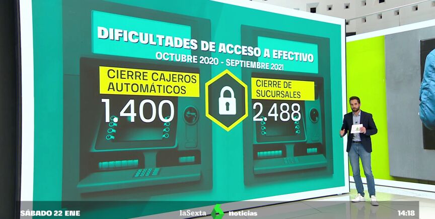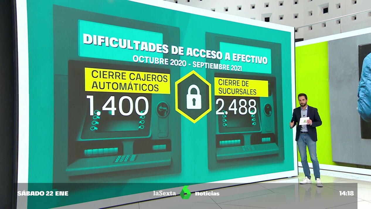 Estas dificultades se deben a dos factores: el cierre de cajeros automáticos y el cierre de sucursales. En el primer caso, se han cerrado alrededor de 1.400 en el último año. En el caso de las sucursales, han sido 2.500 las que se han cerrado.