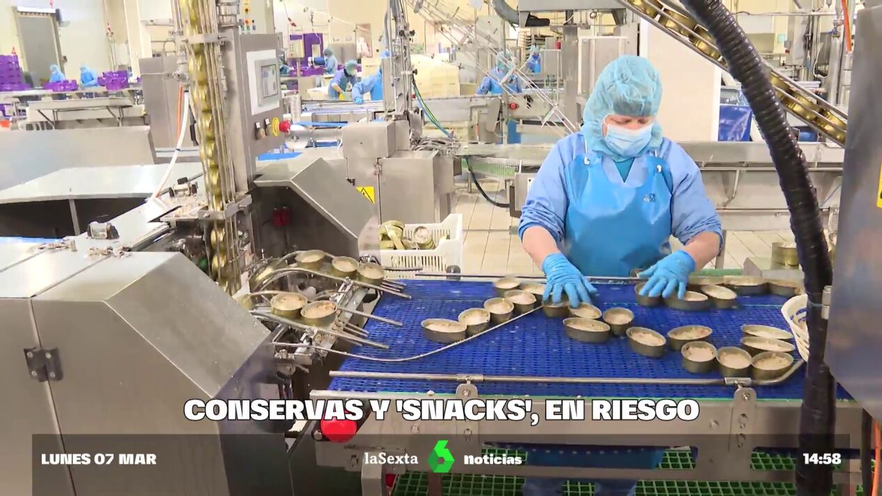 Las conserveras advierten de que en un mes no podrán seguir envasando porque hay problemas de suministro de aceite de girasol. Lo mismo ocurre en las fábricas de snacks, donde están buscando alternativas a este producto.