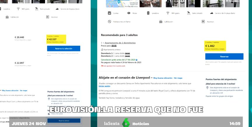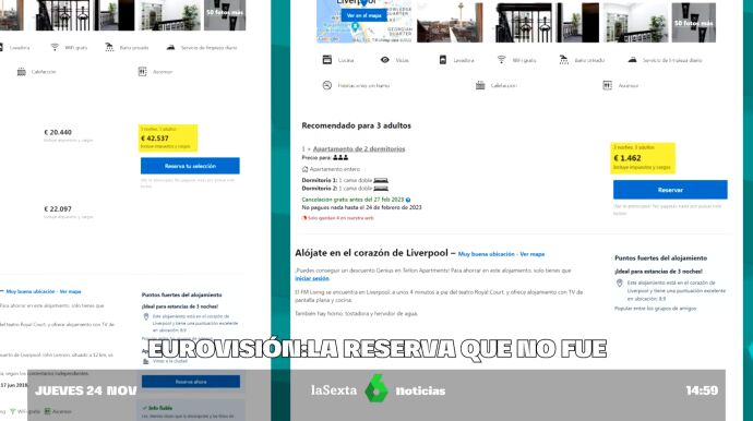 Decenas de hoteles de Liverpool están cancelando reservas para las fechas de Eurovisión para subir los precios. Un apartamento que ahora cuesta 1.000 euros de alquiler, en las fechas del festival sube hasta los 40.000 euros.