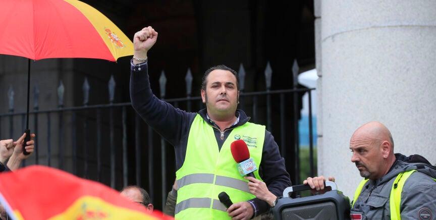 Manuel Hernández, presidente de la Plataforma de Defensa del Transporte por Carretera, convocante de los paros del sector, ha asegurado durante la protesta frente al ministerio de Transportes que se les ha "intentado criminalizar" y ha asegurado que están "haciendo historia".