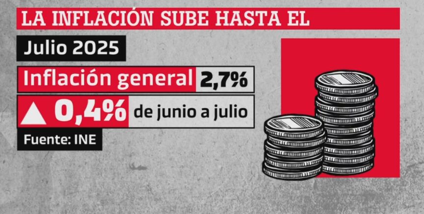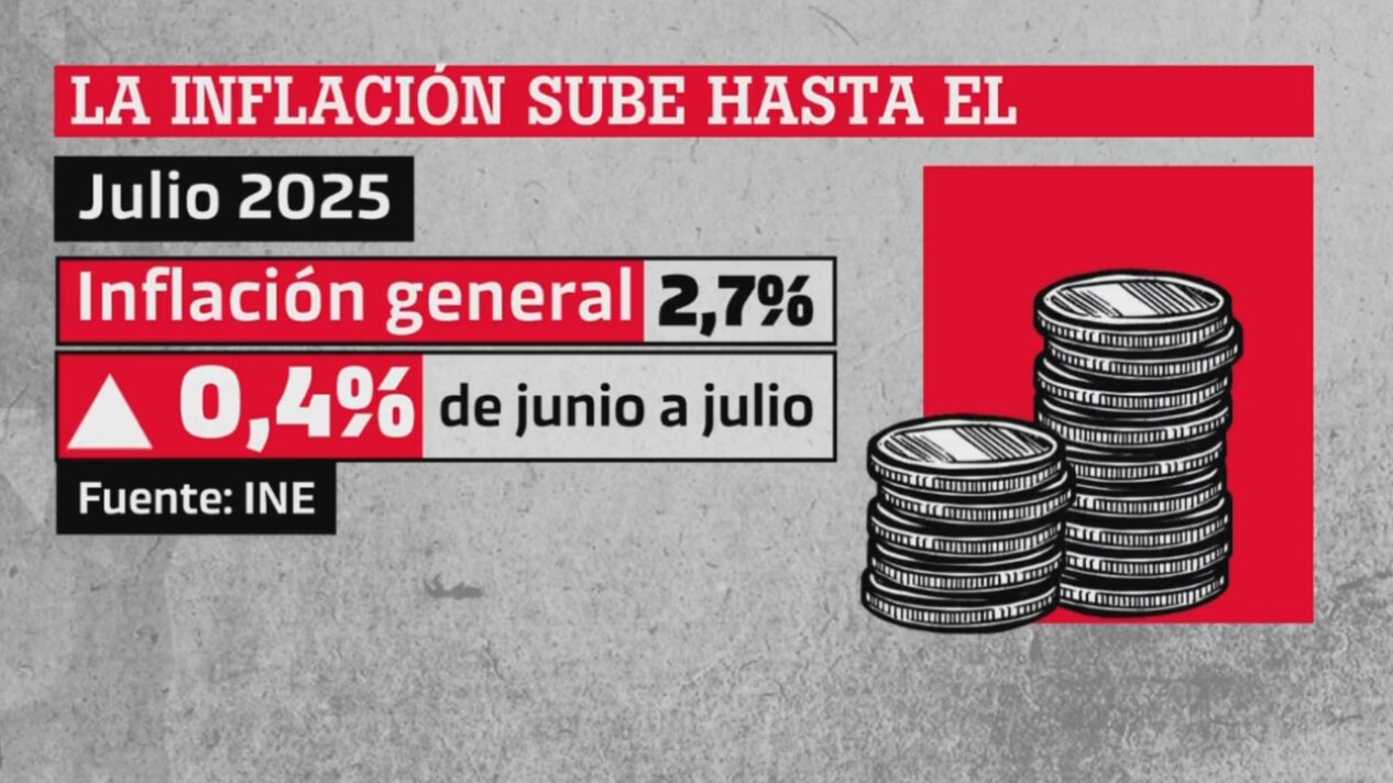 El Instituto Nacional de Estadística (INE) confirma los datos de inflación que ya adelantó a finales de julio. Ese mes, la inflación general se situó en el 2,7% con respecto a julio de 2024, cuatro décimas por encima de la tasa de junio, con lo que el IPC encadena dos meses consecutivos al alza, puesto que en junio su tasa interanual subió tres décimas, hasta el 2,3%.