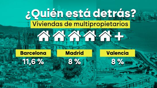 Ahora mismo, más de un millón de pisos pertenecen a grandes propietarios, lo que supone el 9% de todas las viviendas en alquiler. "Lo que hacen es empujar los precios hacia arriba y arrastran al resto del mercado", explica Palomera. Barcelona y Madrid son las peor paradas: allí, las viviendas de grandes tenedores con más de cinco viviendas, suponen el 11,6 y el 8% del total, respectivamente.