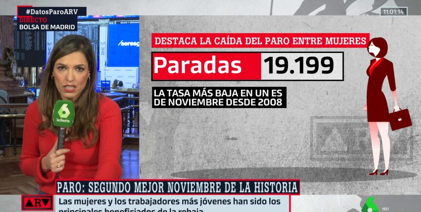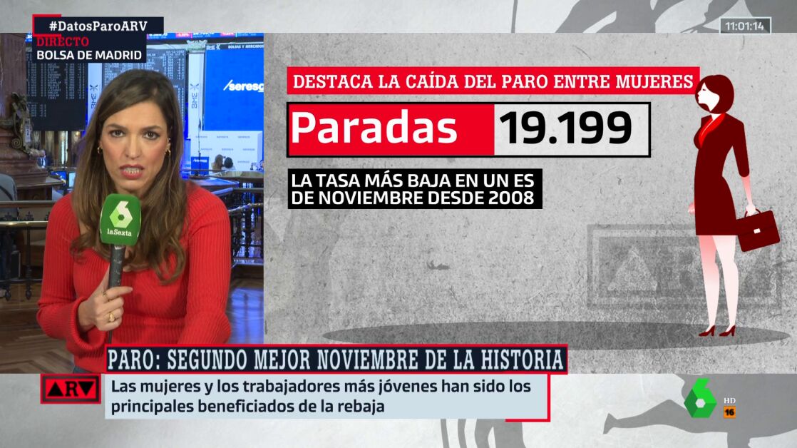 Eldato del paro es bueno, el segundo mejor en un mes de noviembre desde que existe la serie histórica. Pero si nos fijamos en los detalles es mejor aún. El paro entre las mujeres ha marcado una bajada casi de récord y el desempleo entre los jóvenes también desciende de manera muy positiva.