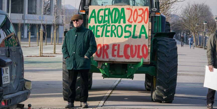 Otro de las quejas de los agricultores es la Agenda 2030, los objetivos propuestos por Naciones Unidas en 2015 para lograr el desarrollo sostenible, con uno de sus lemas más vistos en las tractoradas siendo 'Stop la Agenda 2030'. Esto se debe a que los agricultores creen que se están implantando demasiados cambios medioambientales en poco tiempo. Consideran que algunas de las medidas implantadas para lograr una agricultura sostenible que ayude contribuir a la biodiversidad del lugar en el que se encuentra son lesivas y que se han adoptado sin consultar el sector agrario.