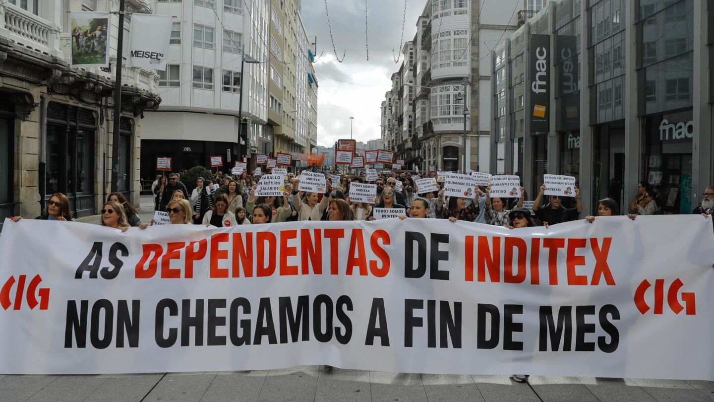 La presidenta del comité de Zara España en A Coruña, Carmen María Naveira, ha dicho que las trabajadoras reclaman la "equiparación salarial" entre los empleados de tienda y los que están en logística y en las fábricas. "Sabemos que un trabajador en las fábricas, siendo mozo de almacén, cobra 2.011 euros de salario base, cuando nosotras cobramos 1.058. Estamos un poco hartas de ser el último eslabón de la cadena y de que nunca haya nada para nosotras", ha expresado.