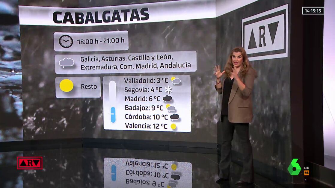 Con la ilusión puesta en ver a Melchor, Gaspar y Baltasar, los niños y adutos que acudan a las Cabalgatas van a necesitar algún acompañamiento extra. El tiempo no da tregua: abriremos los paraguas y prepararemos el gorro, porque en algunos puntos de nuestro país, el recibimiento a Sus Majestades de Oriente irá acompañado de nieve. La cota de nieve está 800.000 metros.