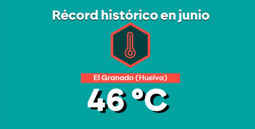 Todo tras una jornada en la que, por primera vez, se registraron 46 grados de temperatura en un mes de junio en España. Fue en El Granado (Huelva), que superó a la temperatura más alta de este mes, registrada en Sevilla en 1965 (45,2 grados).