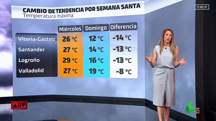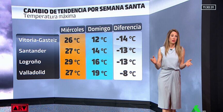 Sin embargo, esta situación durará poco tiempo y es que con la llegada de laSemana Santa, que tendrá lugar del 2 al 9 de abril, se producirá un descenso de nuevo de las temperaturas. En concreto, a partir de este jueves se espera que ya comiencen a bajar. Por ejemplo, en Vitoria pasarán de los 26ºC este miércoles a los 12ºC el domingo.
