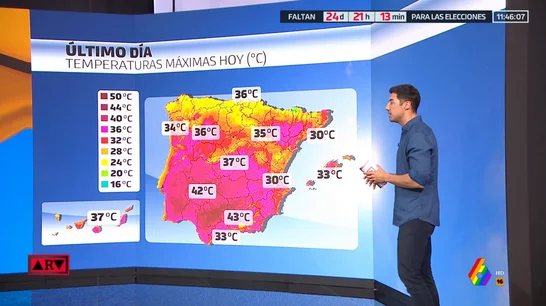 La primera ola de calor del verano llega a su fin tras cuatro días con temperaturas extremas en gran parte del país. De momento, hoy subirán las temperaturas en Canarias y en el resto de la península seguiremos con temperaturas parecidas a las de ayer, superando los 40 grados en Extremadura, Andalucía y puntos de Castilla-La Mancha.