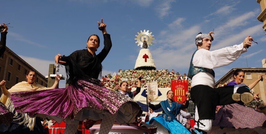 La Ofrenda de Flores a la Virgen es el acto central de las Fiestas del Pilar de Zaragoza. Por ello, cada 12 de octubre el centro de Zaragoza se llena de oferentes con trajes típicos de todo el mundo que llevan ramos de flores para que todos ellos juntos formen el manto de la Virgen del Pilar.