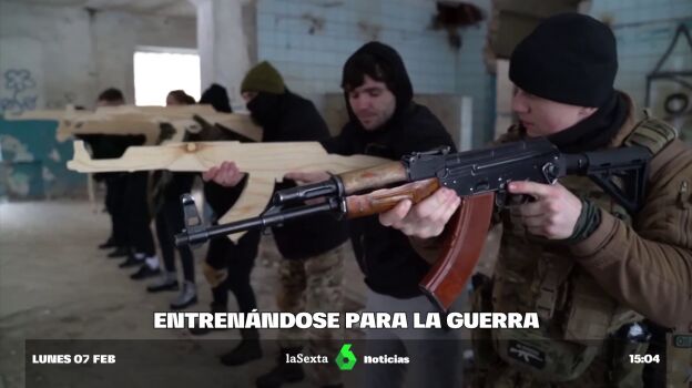 Entrenarse por si llega la guerra es una realidad también para muchos civiles en Kiev. Un equipo de laSexta Noticias ha asistido a uno de esos entrenamientos militares donde ciudadanos de a pie aprenden a empuñar las armas o a hacer registros. Mientras, la diplomacia trata de evitar que el enfrentamiento llegue. Hoy, Macron visita a Putin.