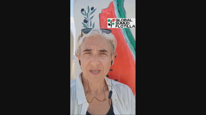 La diputada de la CUP en el Parlament, Pilar Castillejo, también lanzó un mensaje grabado: "Si estáis viendo este vídeo, es porque el Estado israelí nos ha retenido en aguas palestinas mientras intentábamos abrir un corredor humanitario. Salid a la calle y protestad, es la única manera de que la ayuda llegue".