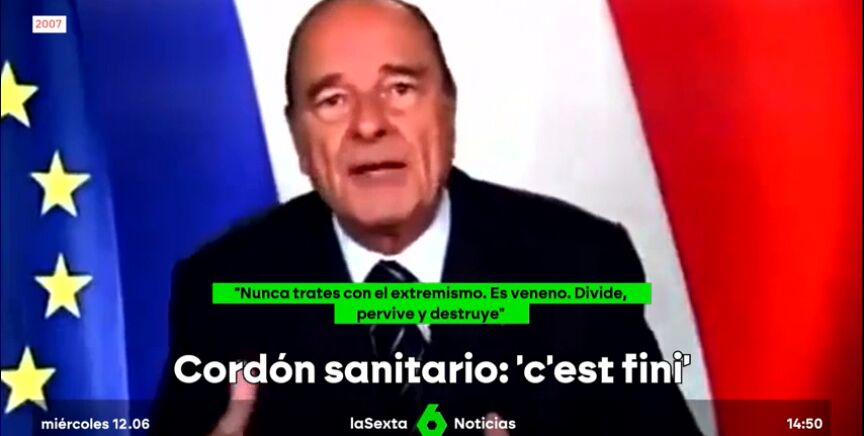 Chirac fue más allá e incluso se negó a debatir con ellos anunciando en 2022 que no iba a debatir con el representante del Frente Nacional: "No puedo aceptar la banalización de la tolerancia y el odio". El sistema francés de doble vuelta, en el que hay que elegir entre dos, ha favorecido ese cordón sanitario. Al propio Chirac le votaron electores de izquierdas para evitar la presidencia de Jean Marie Le Pen.