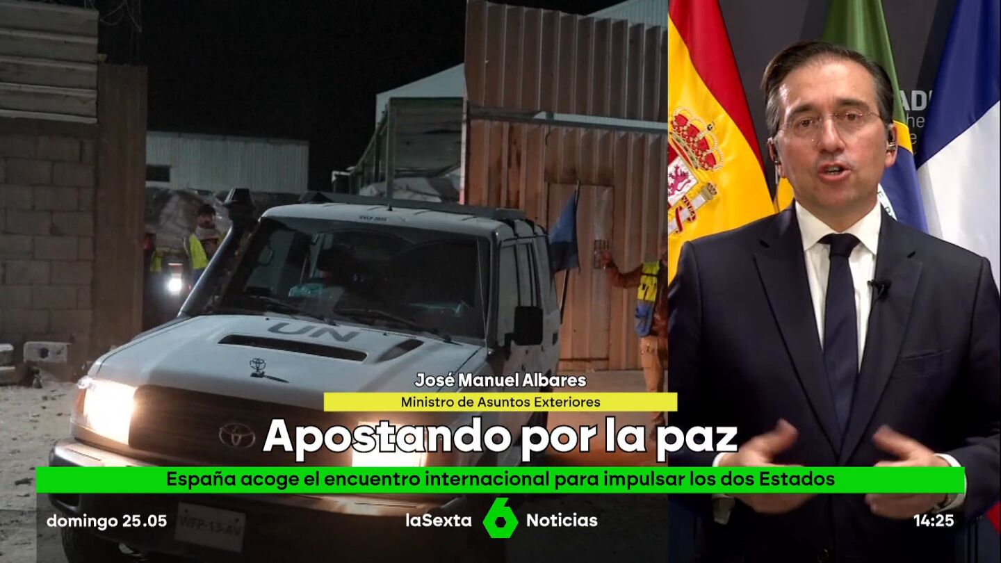 Albares ha cuestionado la postura del resto de países que no apoya la solución de dos estados como el fin del conflicto y ha reforzado su postura con una reflexión: "Como no hay ninguna alternativa a la solución de dos estados. ¿Cuál es la alternativa que propondrían a la solución de dos estados los que no creen en ella? ¿Matar a todos los palestinos? ¿Deportarlos a algún sitio? ¿Tal vez a la Luna? ¿Crear un régimen de Apartheid? ¿Darles la nacionalidad de Israel? Todas estas cosas están fuera de la mesa".