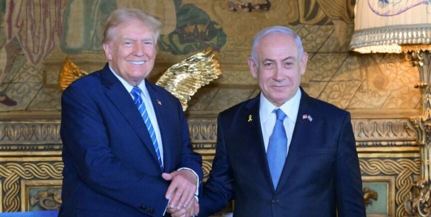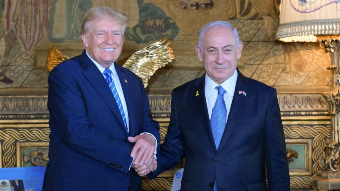 Trump recibió con gesto de cercanía y con los brazos abiertos al jefe de Gobierno israelí en la puerta de su mansión y ambos se saludaron dándose la mano con firmeza, para luego pasar al interior.