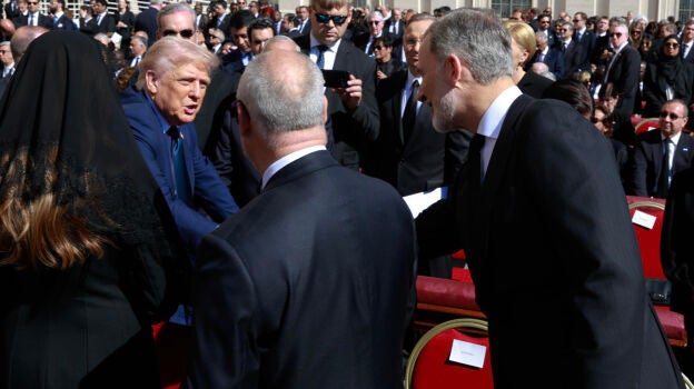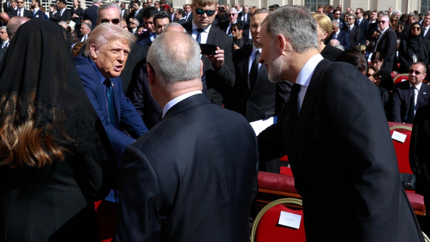 Los Reyes Felipe VI y Letizia se han saludado brevemente con el presidente de Estados Unidos, Donald Trump, antes del inicio del funeral por el Papa Francisco, que se celebra este sábado en la Ciudad del Vaticano, y han intercambiado alguna palabra también con su esposa, Melania Trump.