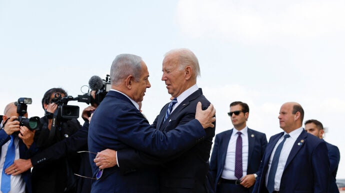 "Quiero agradecerle por venir aquí hoy y por el apoyo inequívoco que ha brindado a Israel durante estos tiempos difíciles, un apoyo que refleja la voluntad abrumadora del pueblo estadounidense", agregó Netanyahu, durante una declaración conjunta con Biden, en la que describió que la cooperación entre ambos países desde el comienzo de la guerra "no tiene precedentes". Además, ha puntualizado que se trata de la primera visita de un presidente estadounidense al país en tiempos de guerra y remarcó que "para el pueblo de Israel, solo hay una cosa mejor que tener a un verdadero amigo del lado de Israel, y es tenerlo en Israel".