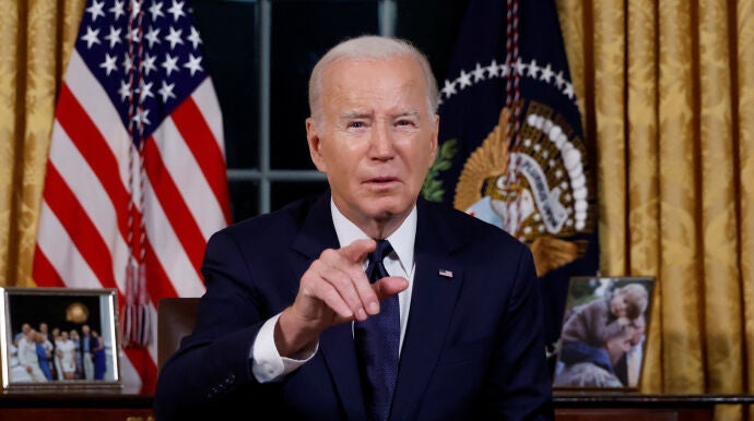 Por otro lado, ha insistido en la importancia de seguir ayudando a los ucranianos para que Rusia "no elimine a Ucrania". "Kiev sigue en pie por la ayuda de la coalición liderada por Estados Unidos (...) Sé que tenemos divisiones, pero debemos superarlas. No dejaremos a terroristas como Hamás o tiranos como Putin ganar. Debemos recordar al mundo quiénes somos. No hay nada de fuera de nuestro alcance si nos lo proponemos", ha afirmado Biden.