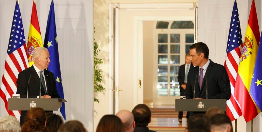 "España y Estados Unidos somos aliados, somos socios estratégicos, somos amigos". Así ha comenzado Sánchez su intervención tras la reunión con Biden, una visita que ha considerado "un hito importante en las relaciones entre ambos países". También Biden se ha pronunciado en términos similares, al incidir en que "la gran amistad entre Estados Unidos y España nos convierte en aliados indispensables"