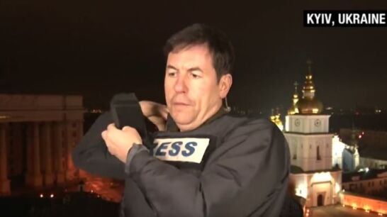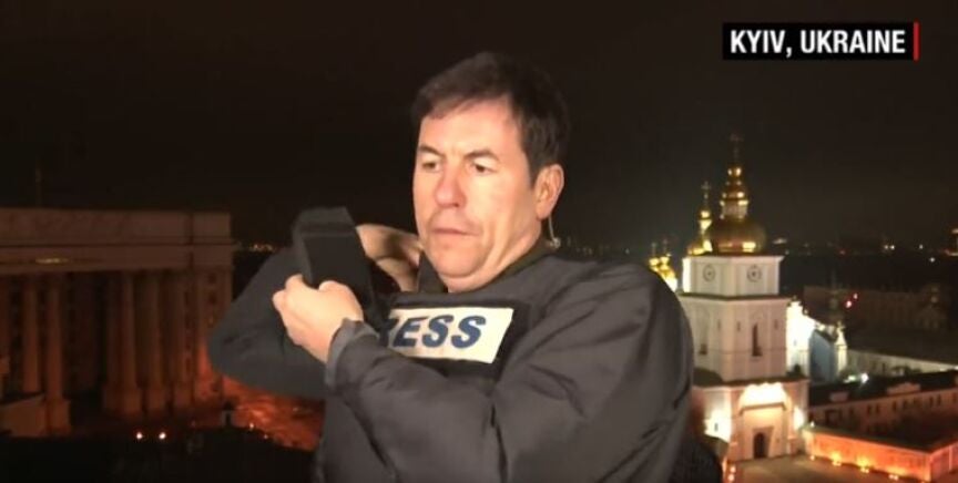El bombardeo en Kiev sorprende en directo al corresponsal de la CNN: así mantiene la calma y se pone el traje de protección