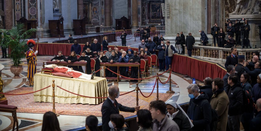 Este lunes se ha abierto al público la capilla ardiente del papa emérito, a la espera del funeral que se celebrará el próximo 5 de enero y que será presidido por el papa Francisco en la plaza de San Pedro.