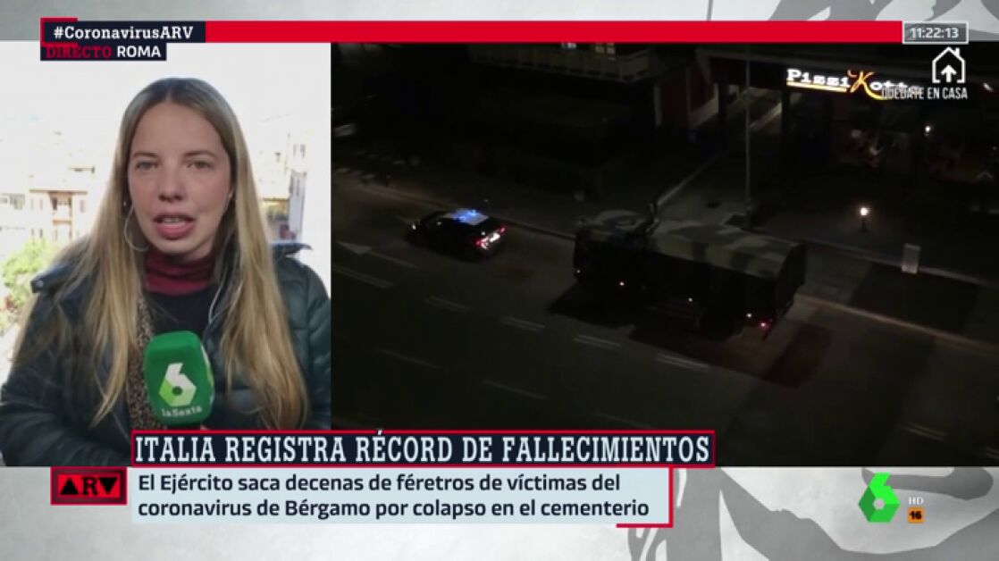 Esta noche, una larga columna de camiones militares ha atravesado el centro de Bérgamo, en el norte de Italia.