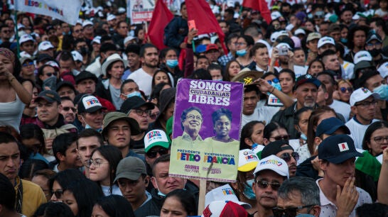 Petro, que fue alcalde de Bogotá entre 2012 y 2015, ha celebrado su victoria como la derrota del proyecto político del todavía presidente Iván Duque y del uribismo y ha prometido "un cambio de verdad". Esta es la primera vez que la izquierda gana unas elecciones en Colombia y también la primera en 20 años en que el uribismo, la corriente de derechas fundada por el expresidente Álvaro Uribe, no está entre las propuestas a elegir.