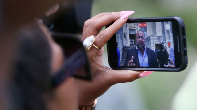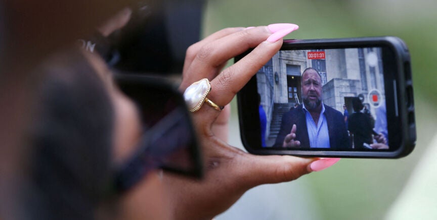 El presentador ha admitido durante el juicio que el tiroteo en la escuela ocurrido en 2018 fue "100% real". Entre sus teorías conspiratorias se encuentra la que acusa al Gobierno estadounidense de los ataques del 11-S en 2001.