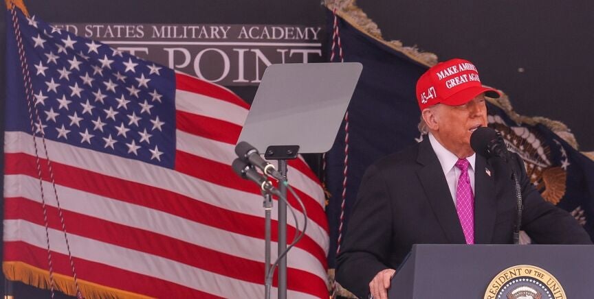Además, ha mandado un mensaje a los cadetes de West Point en lo referente al gasto en defensa: "He puesto en marcha un aumento colosal de las Fuerzas Armadas, uno como nunca antes se ha visto".