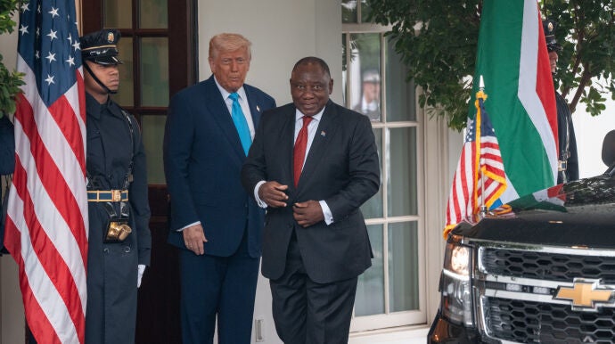 Las encerronas en el Despacho Oval se han vuelto una práctica habitual bajo la administración de Donald Trump. El 28 de febrero, Volodímir Zelenski fue víctima de una de estas escenas, donde Trump y JD Vance le presionaron para firmar un tratado de paz desfavorable para Ucrania. Recientemente, el presidente sudafricano, Cyril Ramaphosa, también enfrentó una emboscada similar. Aunque el encuentro comenzó cordialmente, Trump interrumpió constantemente a Ramaphosa y mostró un video controversial sobre tensiones raciales en Sudáfrica. A pesar de los intentos de Trump por intimidarlo, Ramaphosa logró responder con firmeza, destacando la presencia de altos cargos blancos en su delegación y señalando que no tiene "aviones que darle" a Trump, en referencia a un avión que Qatar ofreció al líder republicano.