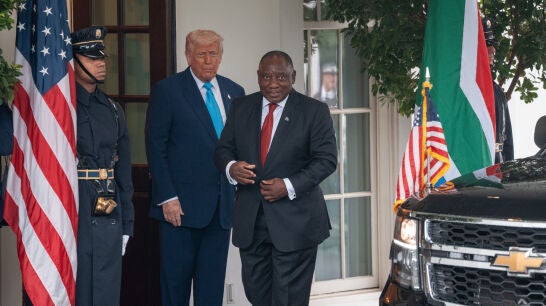 De hecho, el presidente sudafricano no ha caído en la trampa e incluso ha conseguido humillar a Trump cuando este ha sido preguntado por el polémico avión que Qatar quiere regalarle. Ramaphosa ha llegado a decir que el líder republicano no le trata igual que a los representantes del régimen qatarí porque él no tiene "aviones que darle".