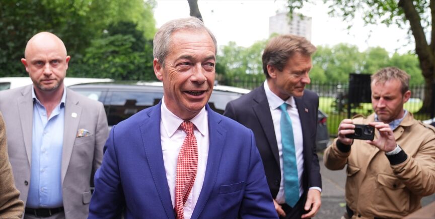 Los nacionalpopulistas de Reform UK, el partido liderado por el Nigel Farage, sería la segunda fuerza más votada en las próximas elecciones generales del 4 de julio en el Reino Unido, según una encuesta publicada este jueves que los coloca por primera vez por encima de los conservadores.