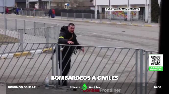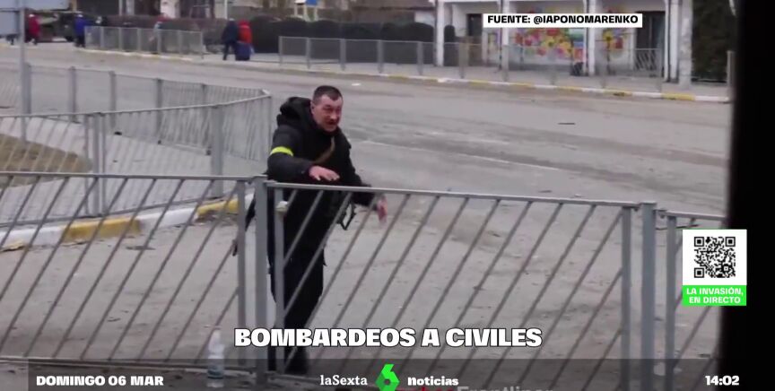 Laguerra en Ucrania está provocando momentos de verdadero terror y completamente escalofriantes. Es lo que ha sucedido en Irpín, a las afueras de Kiev, donde no hay un alto al fuego. Ahí un corredor humanitario ha sido atacado por un bombardeo ruso. Y cuando este hombre intentaba escapar de la zona, como se pude ver en el vídeo principal de la noticia, un misil cae a escasos metros.