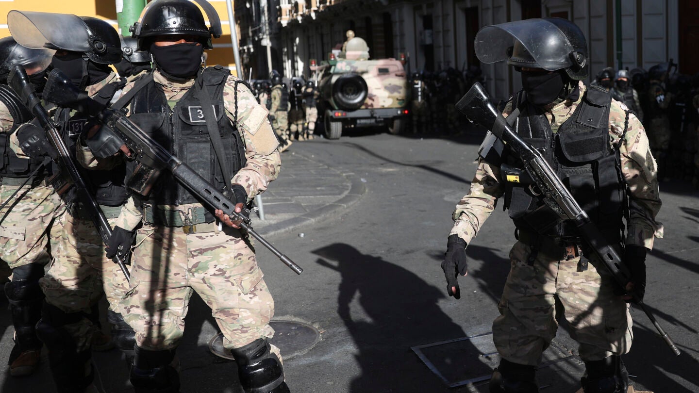 Un tanque ha tirado las puertas de la sede del Ejecutivo de Bolivia e ingresó a las 15:51 horas, después de que el comandante general del Ejército boliviano, Juan José Zuñiga, amenazara con tomar la sede del Gobierno y cambiar el gabinete. Arce advirtió que es un "acto ostensiblemente violento y contrario al orden constitucional" y que "aparentemente" el comandante del Ejército "estaría detrás".
