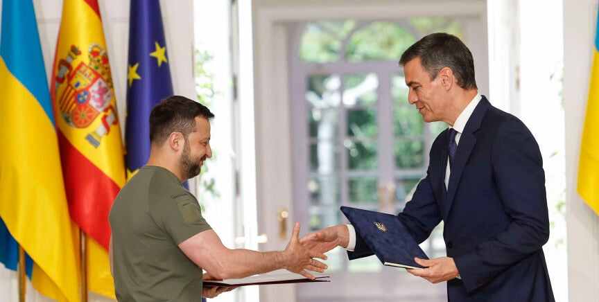 El presidente ha firmado un acuerdo con Zelenski donde se destaca que nuestro país "proseguirá su cooperación militar para contribuir a que Ucrania pueda seguir ejerciendo su legítimo derecho de legítima defensa y para ayudarla a adaptar y modernizar sus fuerzas de seguridad y defensa, en estrecha cooperación con la Unión Europea y la OTAN". Por ello, en 2024, "España aportará 1.000 millones de euros en concepto de apoyo militar".