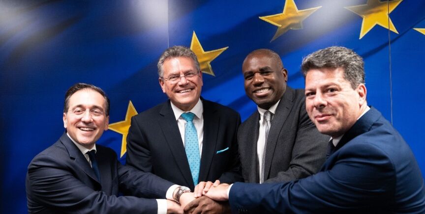 El acuerdo llega tras el encuentro mantenido por Sefcovic con Albares, y el ministro de Exteriores británico, David Lammy, al que también ha asistido Picardo. Y, aunque la reunión a cuatro estaba inicialmente prevista para las 13:45 horas, Lammy y Picardo no han llegado a la sede de la Comisión Europea hasta cerca de las 16:00 horas. Venían de la Embajada británica, que está situada en el mismo barrio europeo. Por ello, Albares se reunió con Sefcovic desde horas antes.