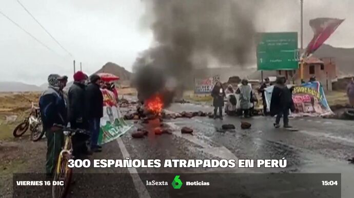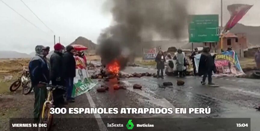 Muchos españoles llevan días tratando de escapar de Perú. La inestabilidad desatada en los últimos días ha dejado atrapados allí a alrededor de 300 turistas de nuestro país. Algunos cuentan a laSexta que han llegado a ser amenazados o que, sin transporte, han tenido que caminar decenas de kilómetros de una ciudad a otra en busca de una salida.