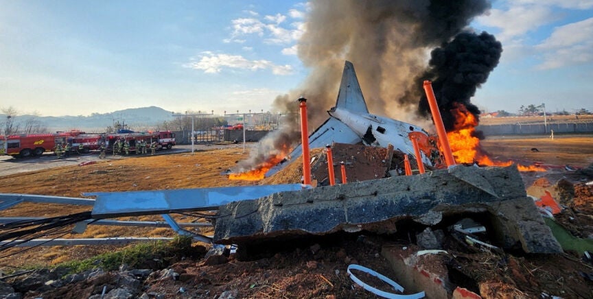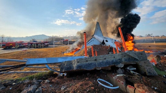 Un total de 179 personas han muerto en un accidente en el aeropuerto de Muan, en Corea del Sur de un vuelo procedente de Tailandia en el que viajaban un total de 181 ocupantes entre tripulación y pasajeros. Todo, tras un siniestro que las autoridades investigan y achacan a un posible fallo en el tren de aterrizaje.