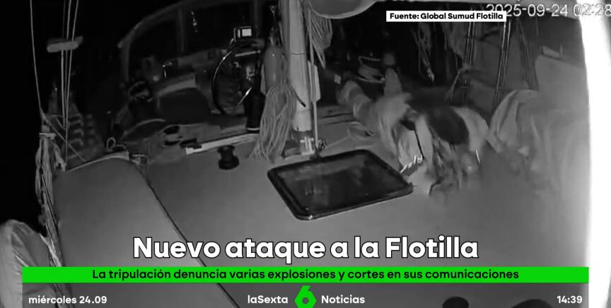 Uno de los ataques, por ejemplo, ha provocado "daños significativos" en la vela principal de una de las embarcaciones que conforman la misión, el 'Taigete', si bien sobre las 6:00 de la mañana parecía seguir navegando, a una velocidad de algo menos de 4 nudos. A las 2:23 de la madrugada, se puede ver una explosión sobre la embarcación, filmada y compartida desde el perfil de Instagram de Quentin Quarantino, un proyecto de Tommy Marcus, que viaja a bordo del 'Familia Madeira'.