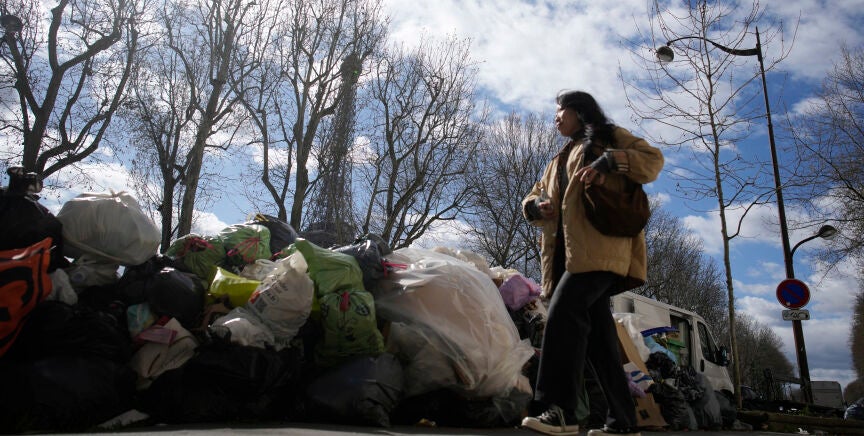 La tensión en Francia continúa aumentando debido a la reforma de pensiones de Macron. En París, las calles continúan llenas de basura debido a que el servicio de recogida del sector público continúa en huelga, unas protestas a las que ahora se unirá también, de manera indefinida, el sector privado.
