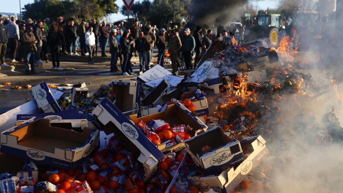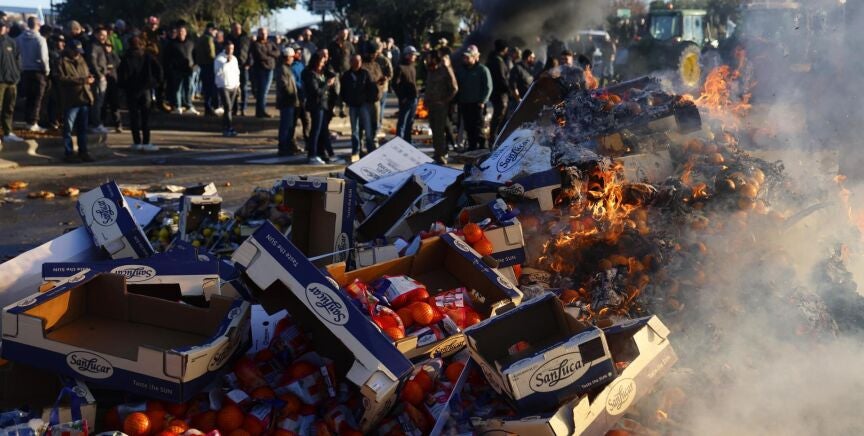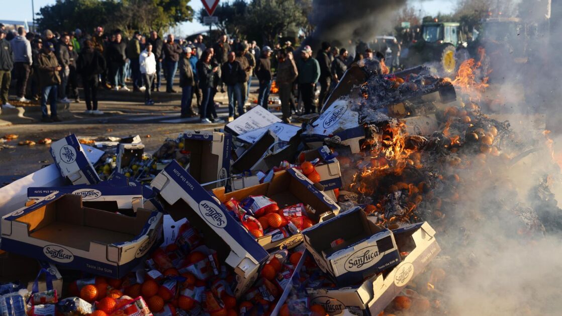 En los últimos días, hemos visto camiones calcinados en Narbona, en el sudeste de Francia. Precisamente, allí se se han vivido escenas como la que muestra el vídeo principal que acompaña a la noticia, de agricultores en cólera incendiando mercancía extranjera para segundos después celebrar su vuelco.