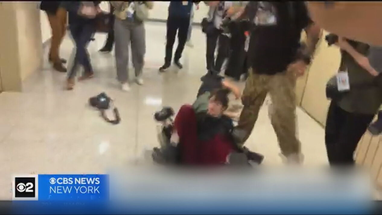 Ambos tuvieron que ser trasladados en ambulancia al hospital. Según 'CBS', fueron sacados del edificio en camilla, con collarín y bajo supervisión médica. "No hubo ninguna advertencia. Hubo un grito e inmediatamente empujaron a un compañero", relató Fedorova.