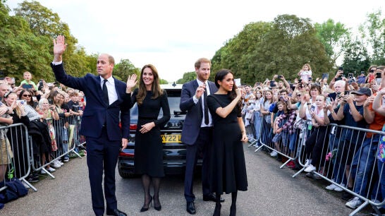 Los príncipes Guillermo y Enrique, distanciados desde hace más de un año, han salido juntos con sus respectivas esposas, Kate y Meghan, al exterior del castillo de Windsor, a las afueras de Londres, para saludar a la gente allí congregada para expresar el pésame por la muerte de Isabel II. Paralelamente, se ha visto alrey Carlos III dejar en Rolls-Royce el palacio de Buckingham, en la capital, y cómo su vehículo se paraba en medio de la avenida para que pudiera salir a saludar a la multitud.