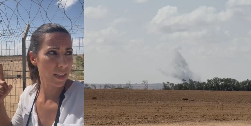 "No sé si podéis ver allí al fondo una Columba de humo de una de las explosiones que acaba de haber", ha expresado desde la frontera entre Israel y Palestina para constatar que los israelíes continúan con los ataques.
