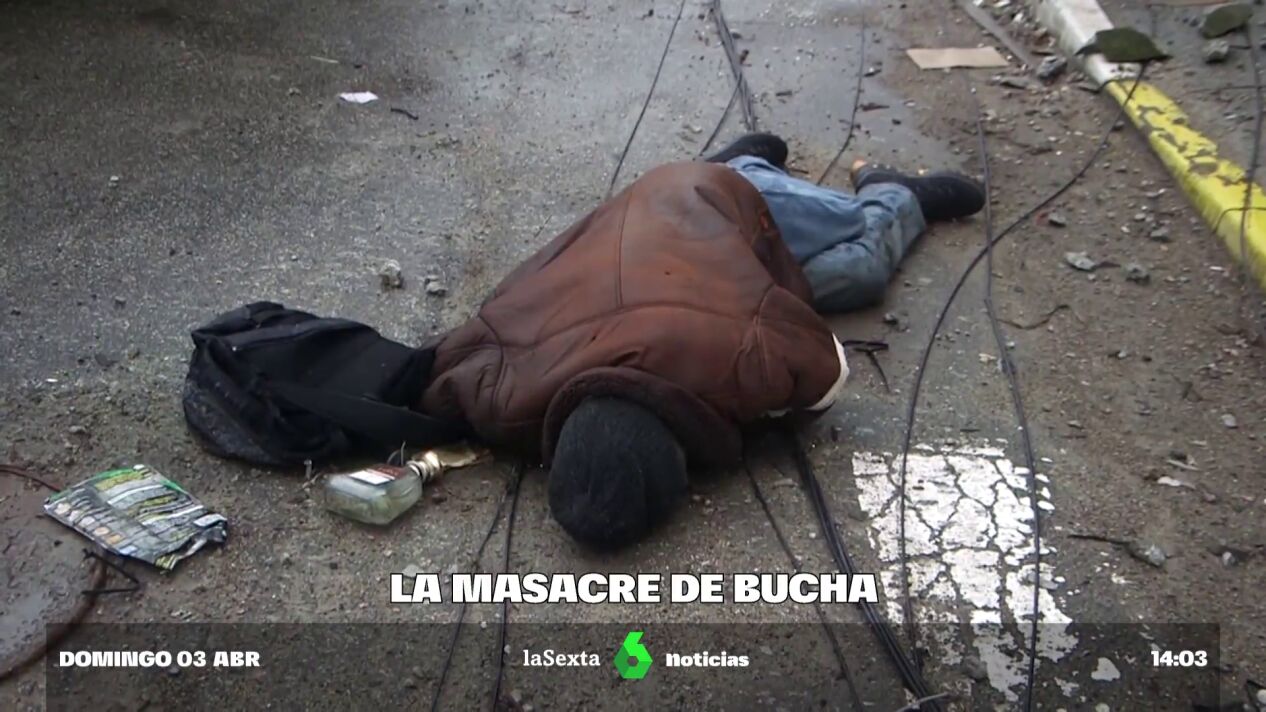 Los cuerpos siguen esparcidos por las calles porque el ejército ucraniano teme que hayan colocado minas y cables explosivos junto a ellos.