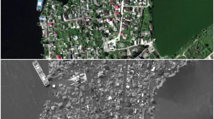 Las imágenes de la catástrofe en Nova Kajovka: los satélites muestran inundaciones en más de 2.500 km² tras la ruptura de la presa